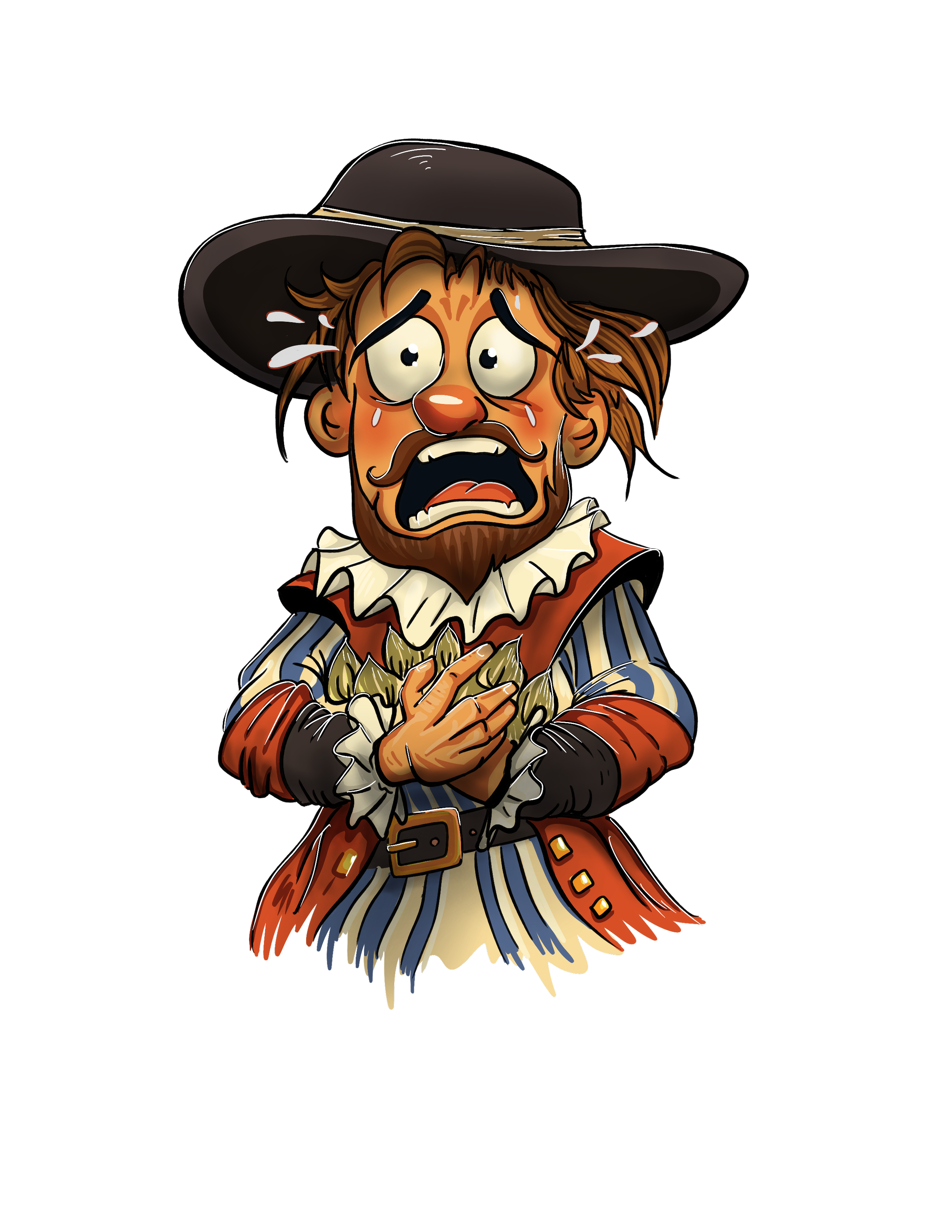 A 17th-century Dutch merchant clutches his tulip bulbs in absolute terror as the market collapses around him. Bold outline digital illustration created for the History Illustrated Tulip Mania video. Part of the History Illustrated financial history series.